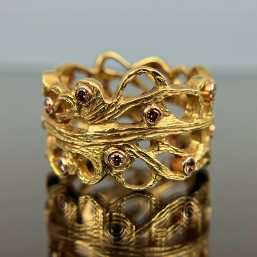 Sarah Graham MetalSmithing 18k Champagne Diamond Yellow Gold Ring Band Size 7