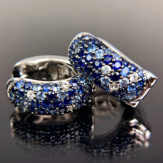 EFFY Splash BH 925 Sterling Silver Pavé Blue Sapphire Hoop Huggie Earrings