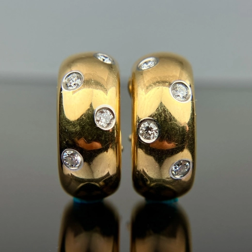 Tiffany & Co Etoile 18k Yellow Gold Platinum Diamond Hoop Huggie Omega Earrings