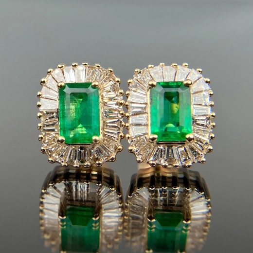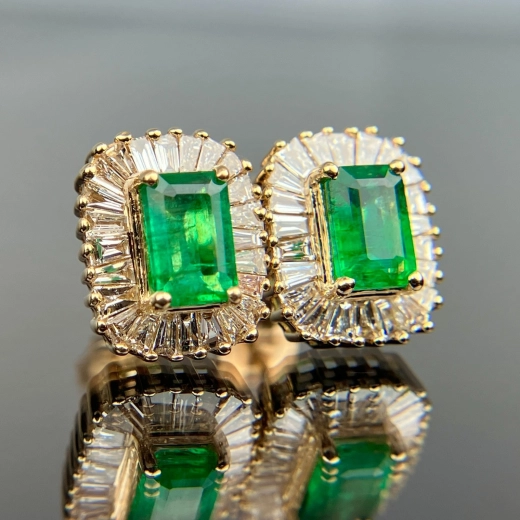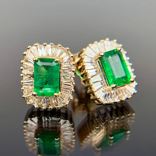 EFFY 14k Yellow Gold Diamond & Emerald Baguette Ballerina Halo Stud Earrings