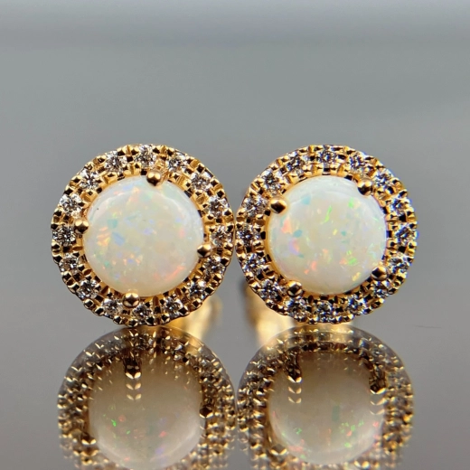 EFFY 14k Yellow Gold Diamond & Opal Halo Stud Earrings