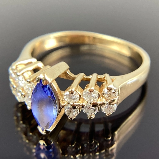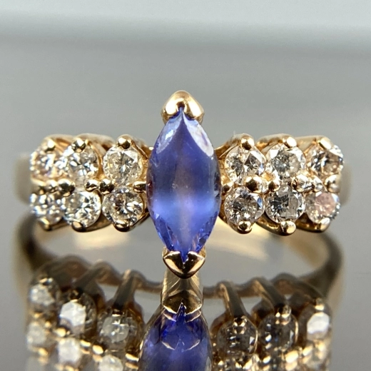 EFFY BH 14k Marquise Tanzanite & Diamond Yellow Gold Ring Size 6.75