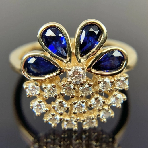 14k Yellow Gold Diamond & Trillion-Cut Sapphire Halo Ring Size 6.25