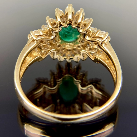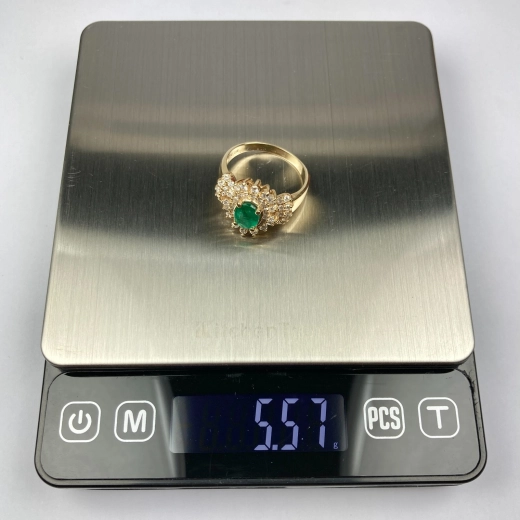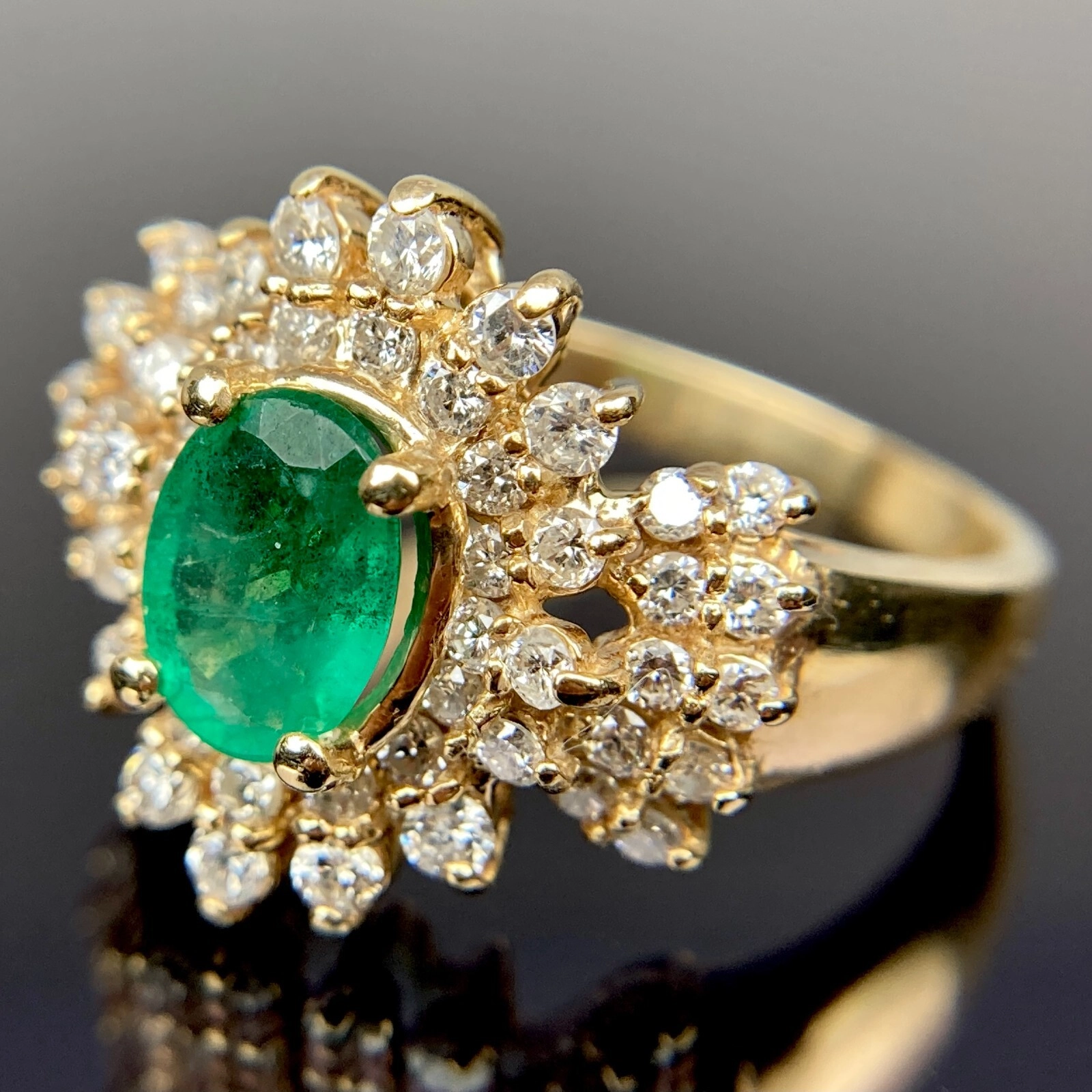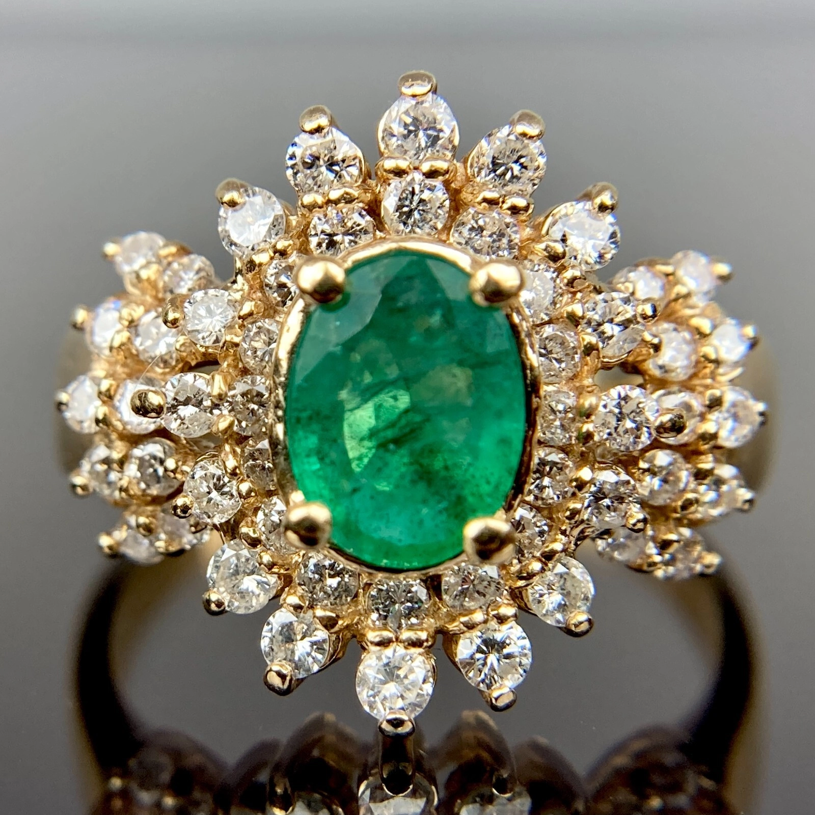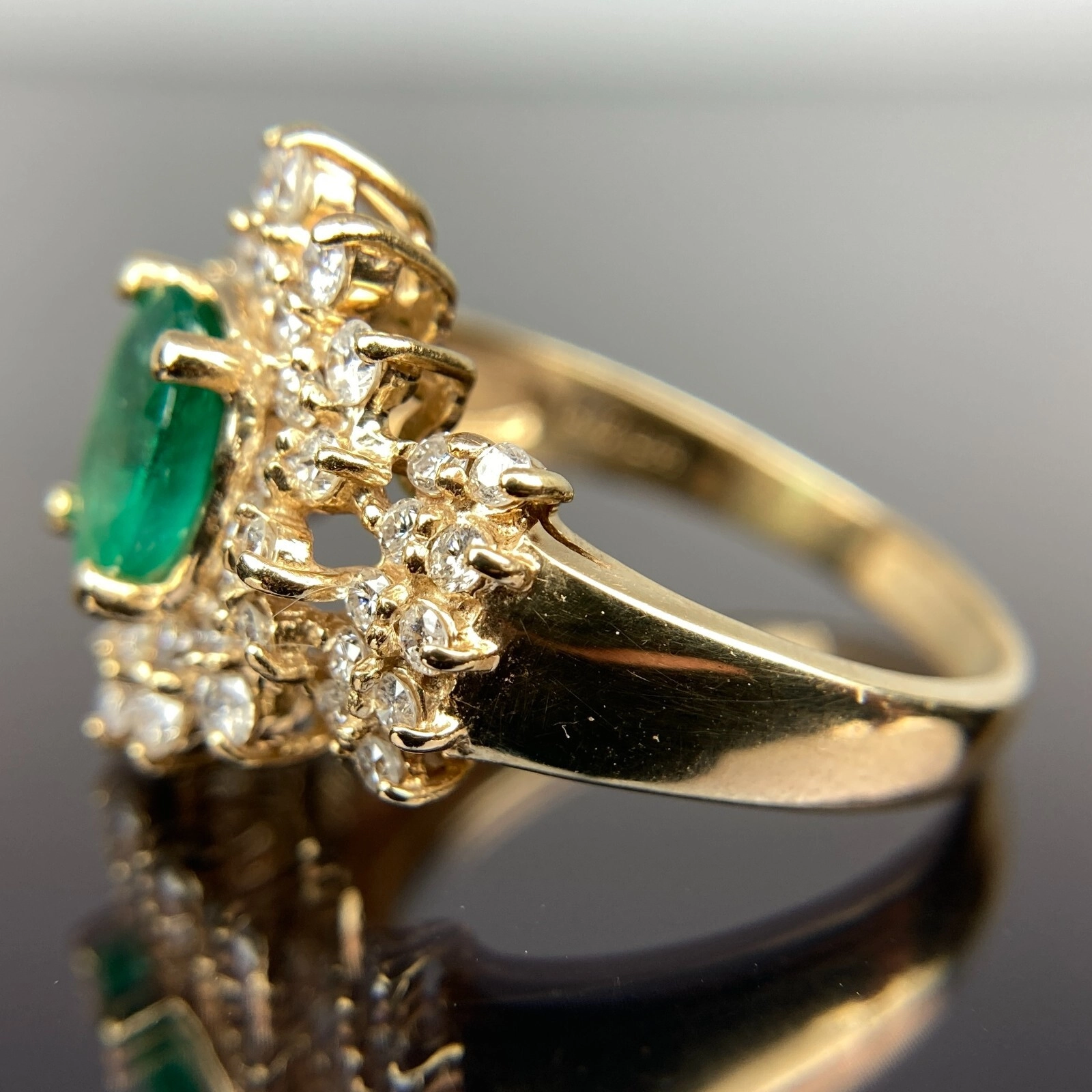 EFFY BH 14k Diamond & Emerald Double Halo Yellow Gold Ring Size 9.5, 5.57 Grams, Size 9.5, 1.8 - 2.05 Carats.