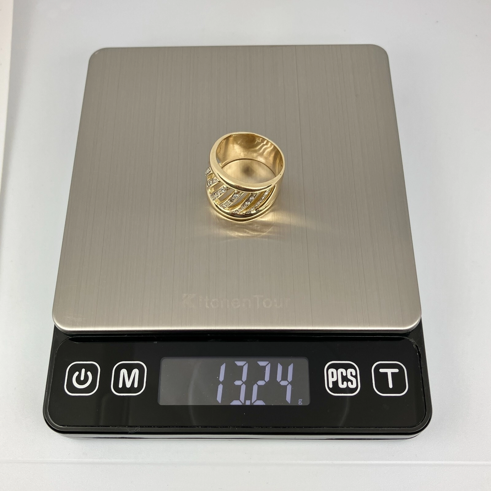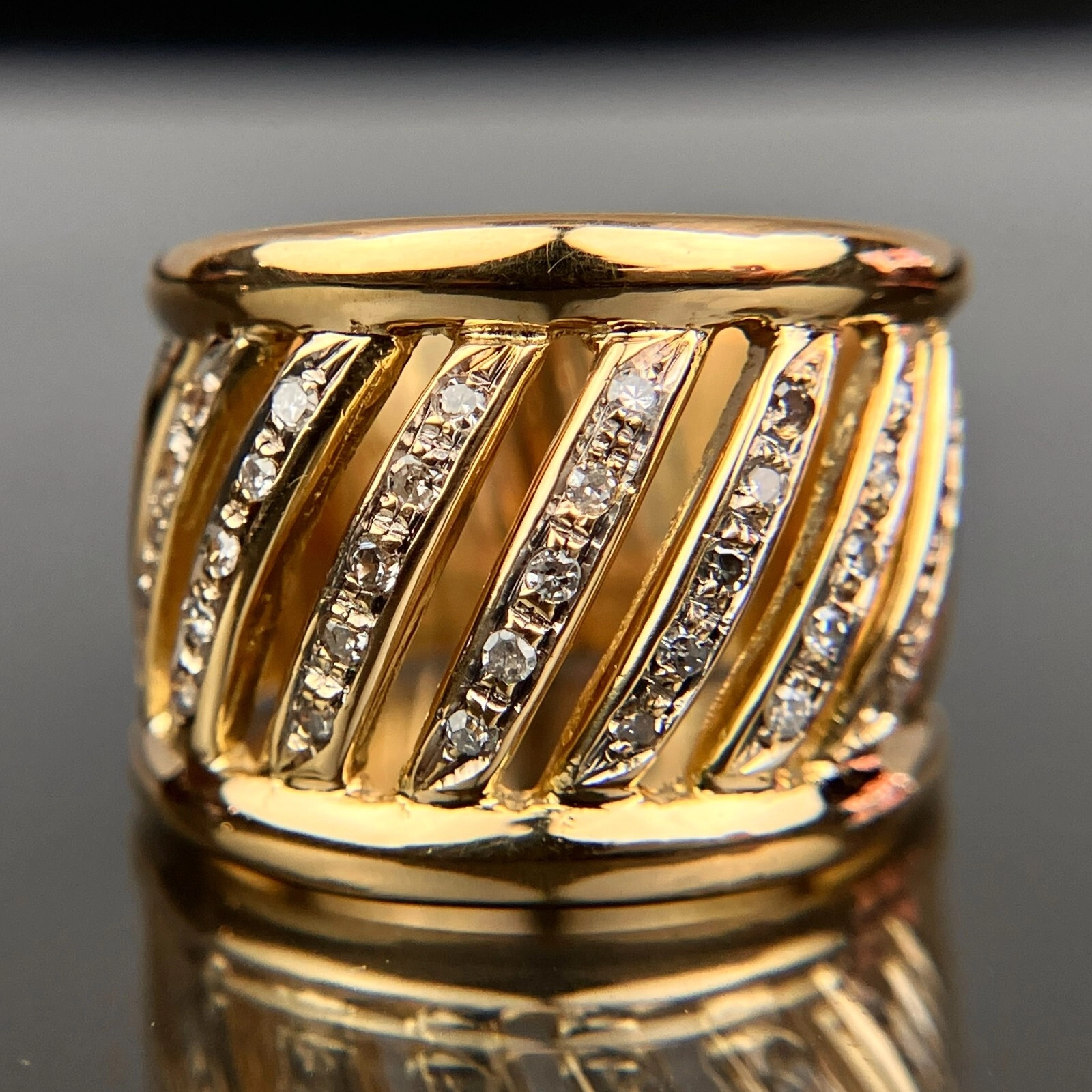18k Diamond Cigar Band Yellow Gold Ring Size 8.5, 13.24 Grams, Size 8.5.