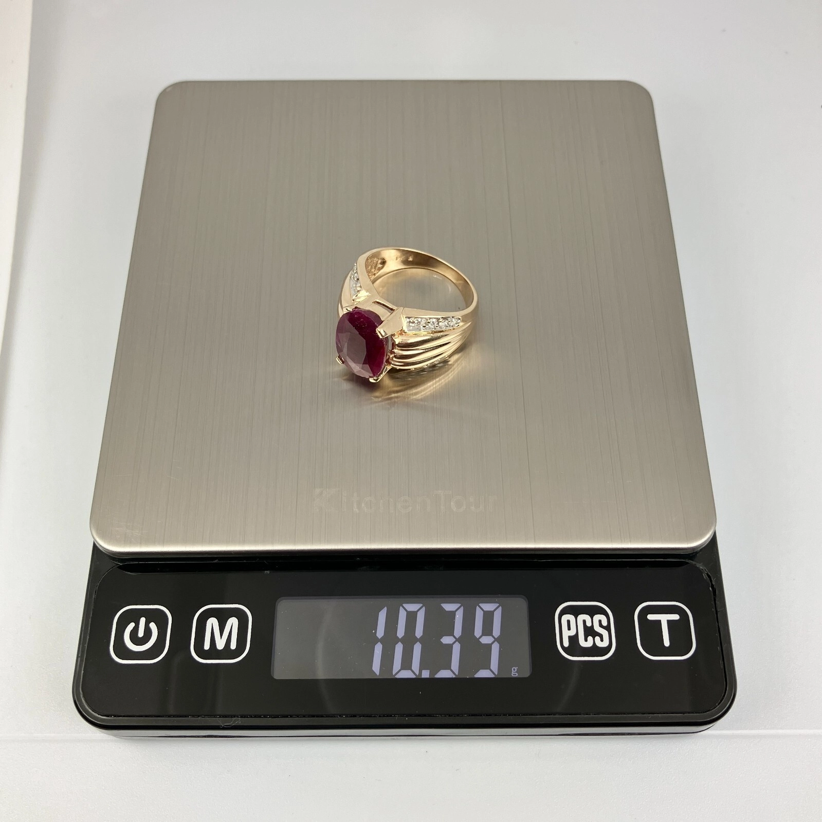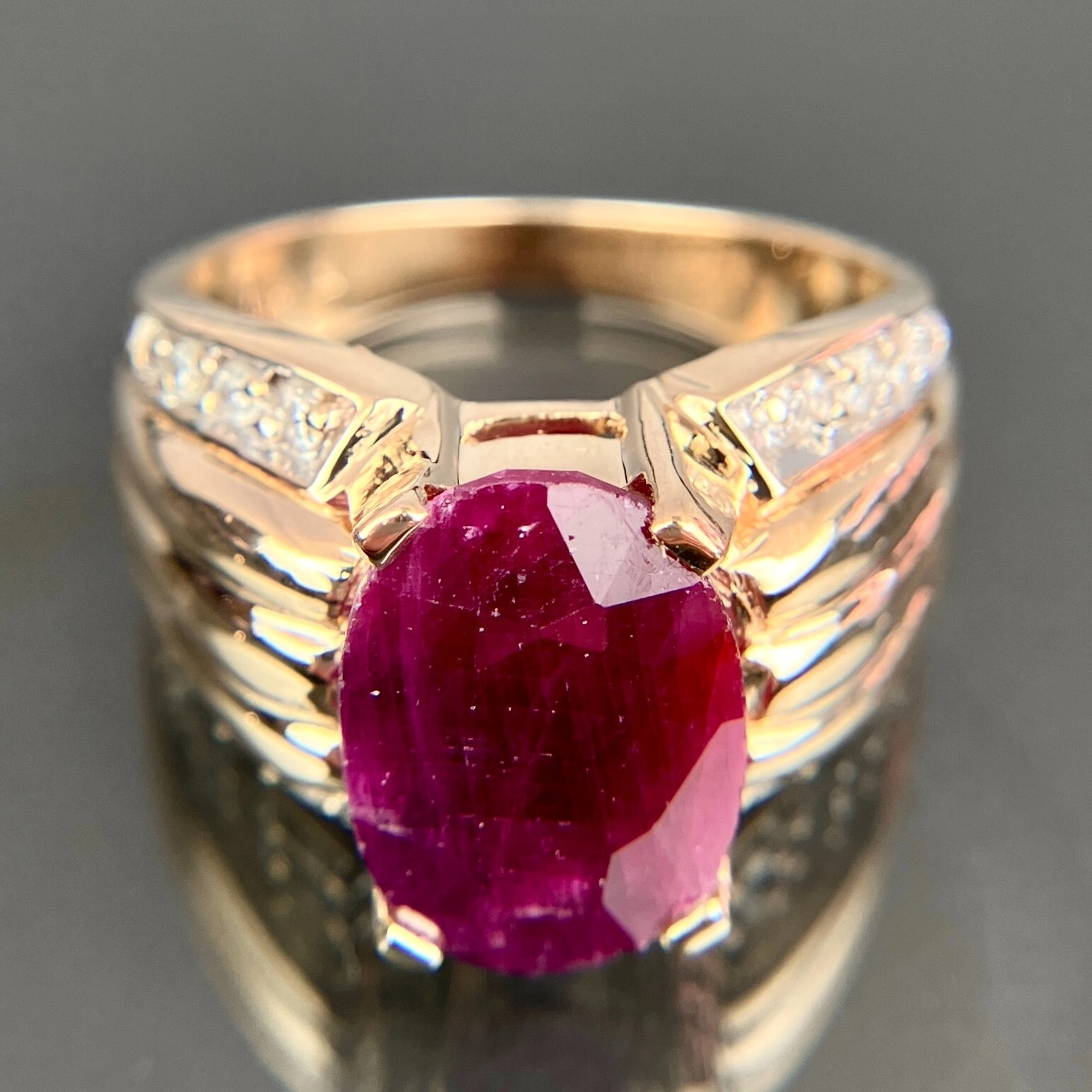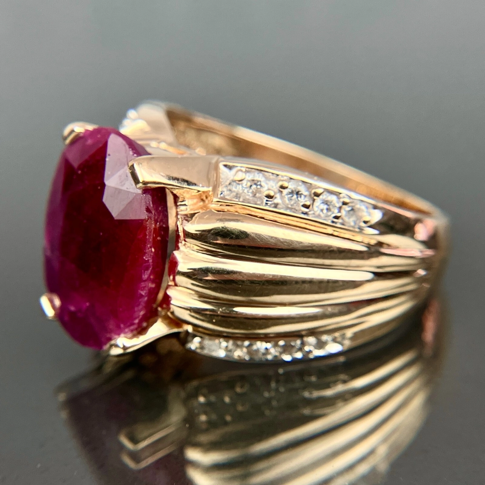 14k Diamond & Ruby Yellow Gold Ring Size 8.5, 10.39 Grams, Size 8.5.