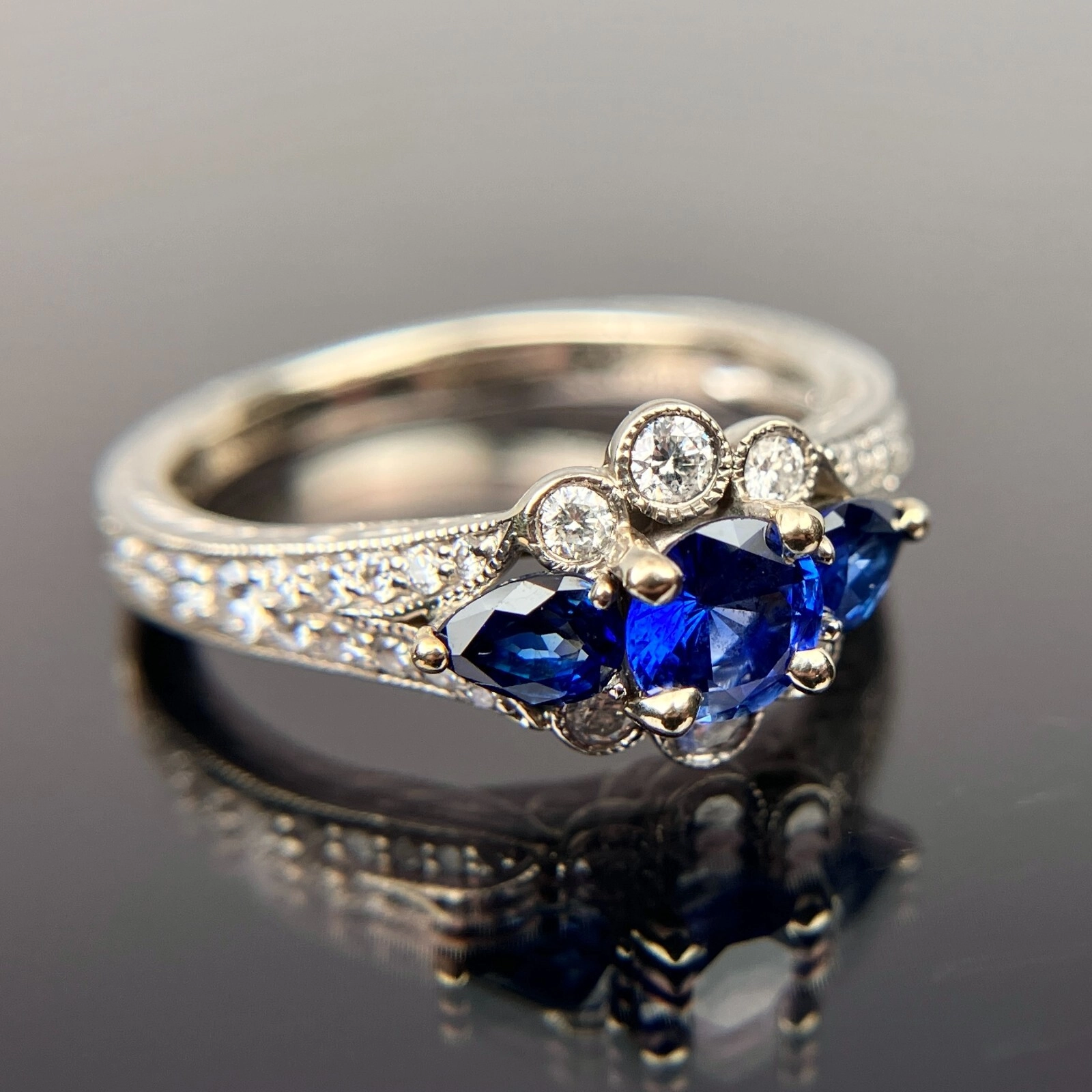 Gabriel & Co 14k Diamond & Sapphire Solitaire Engagement Ring Size 5.25, 3.21 Grams, 1.15 Carats, Size 5.25.