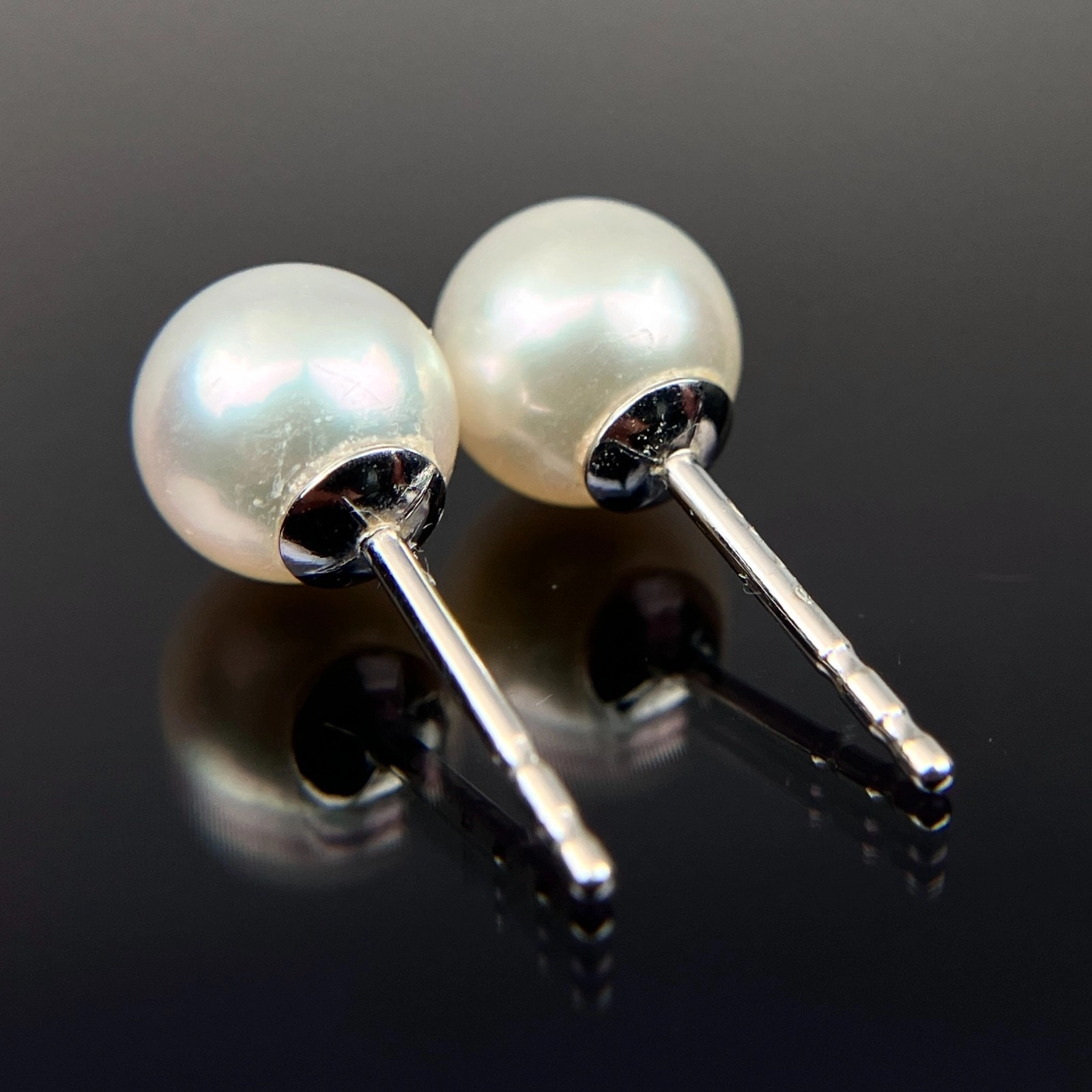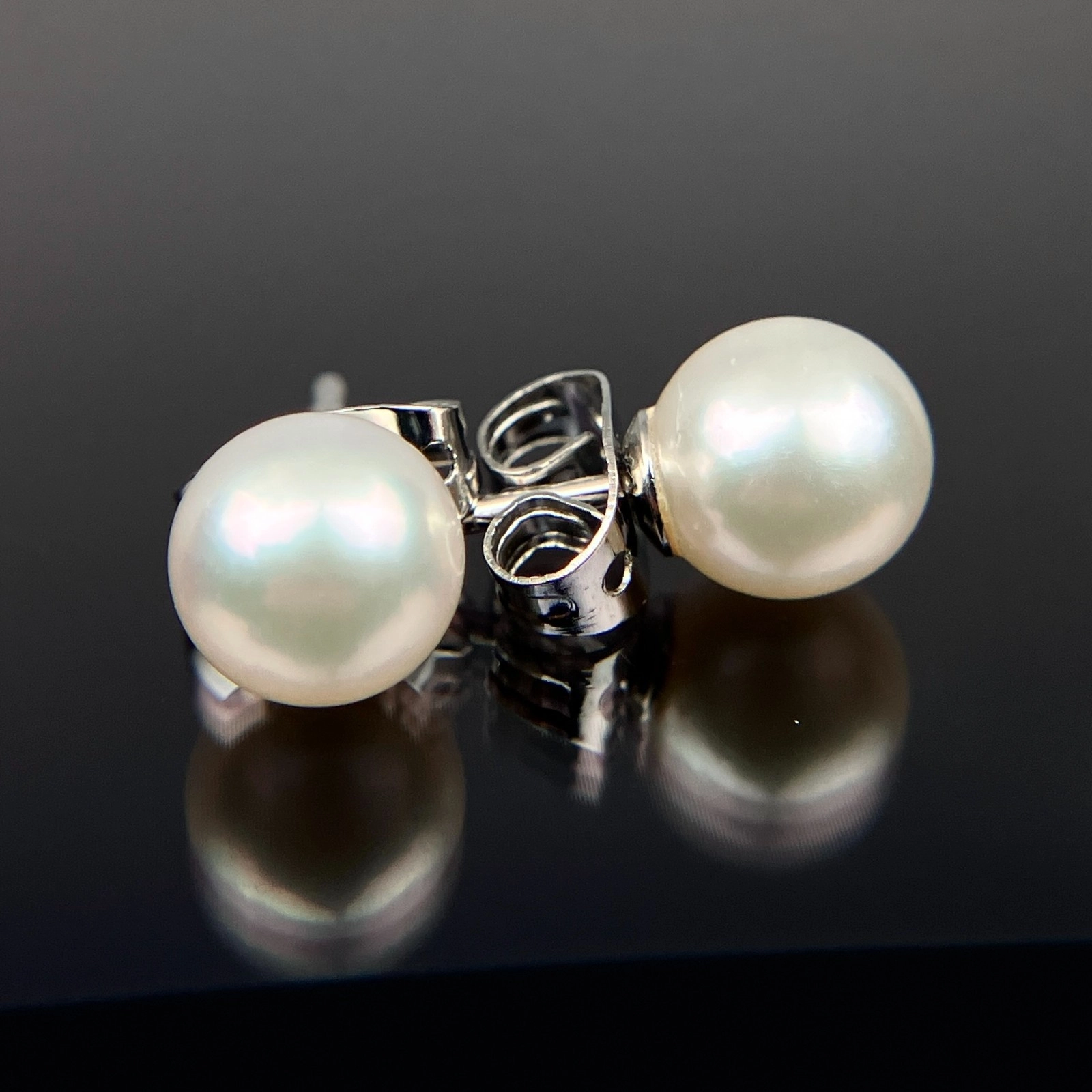 Mikimoto 18k White Gold 6.5mm Pearl Stud Earrings, 1.26 Grams, 2 6.5mm Pearls.