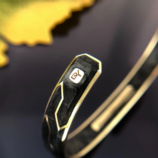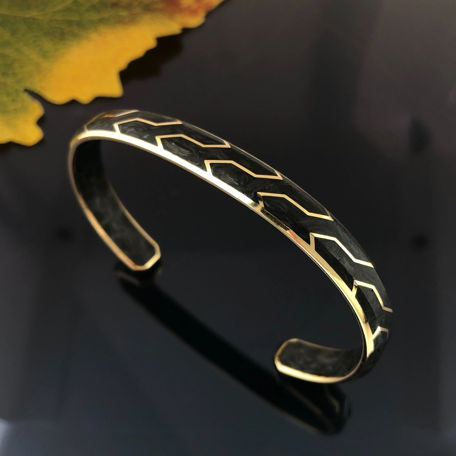David Yurman Streamline 18k Yellow Gold Carbon Forged Bangle Bracelet, 17.1 Grams, 8.3mm Bangle Width.