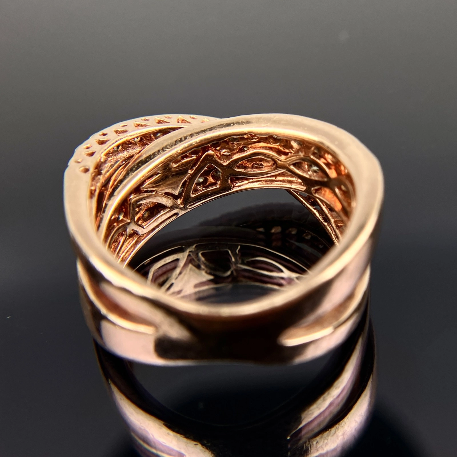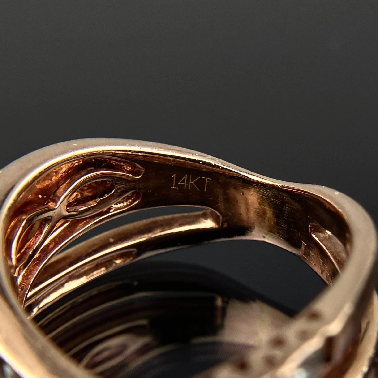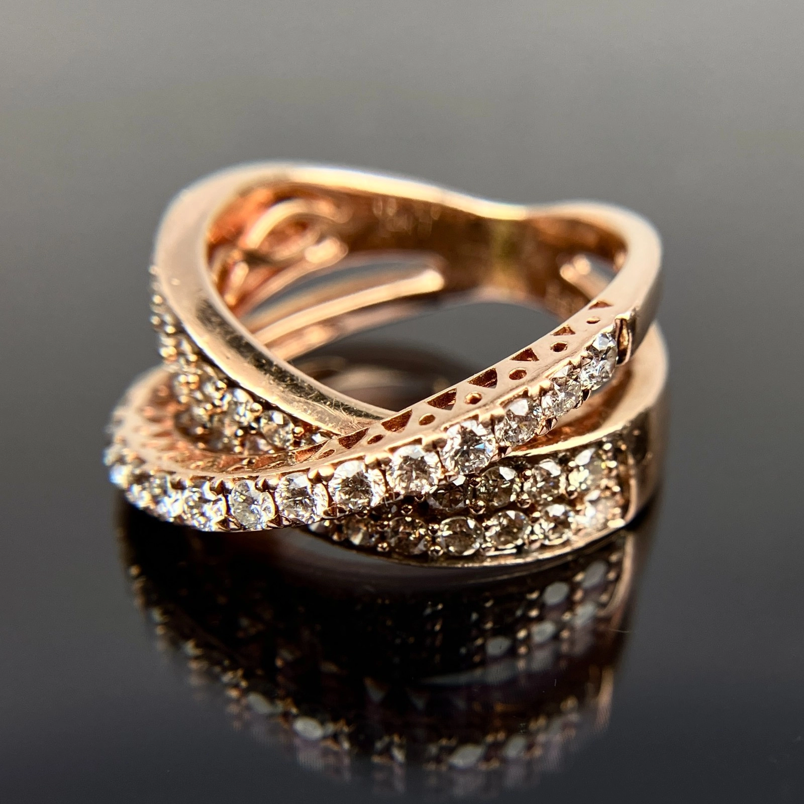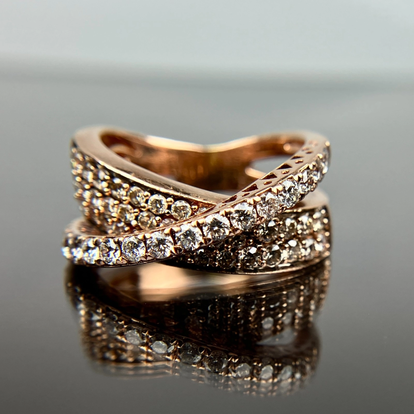 Le Vian 14k White & Chocolate Diamond Crossover Rose Gold Ring Size 5.75, 6.91 Grams, 0.68 Carats.