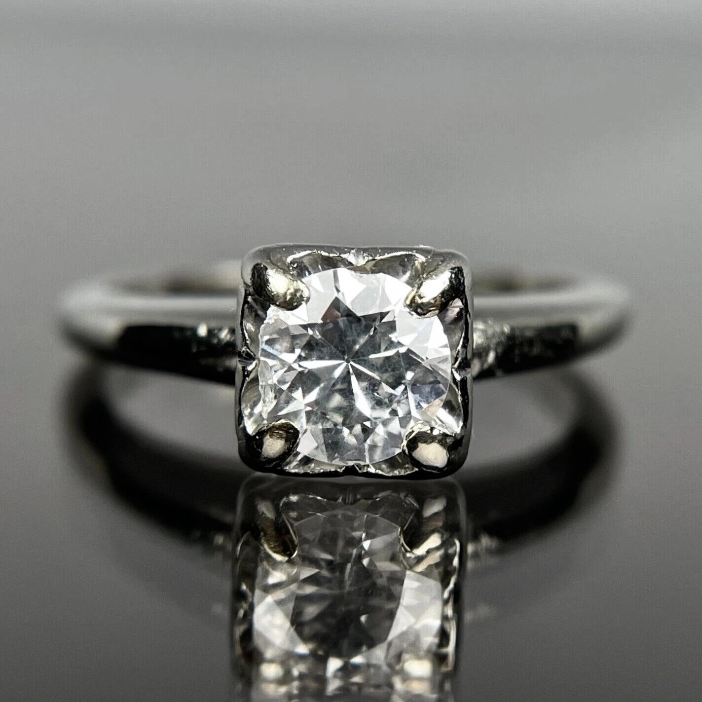 14k Diamond Solitaire White Gold Ring Size 5, 2.85 Grams, 0.46 Carats.