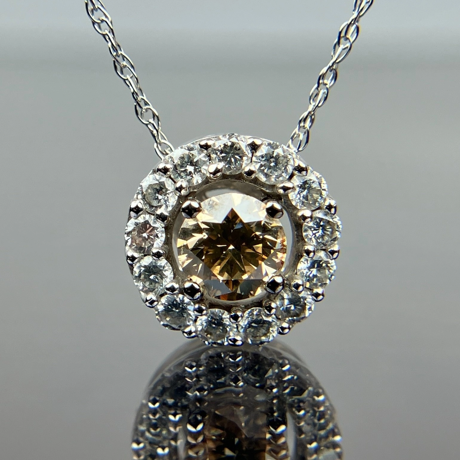 Le Vian 14k White Gold Diamond Halo Pendant with 18" Necklace, 2.71 Grams, 0.56 Carats, 9.1mm Pendant Height, 18" Necklace.