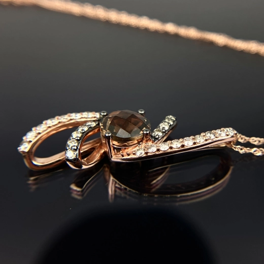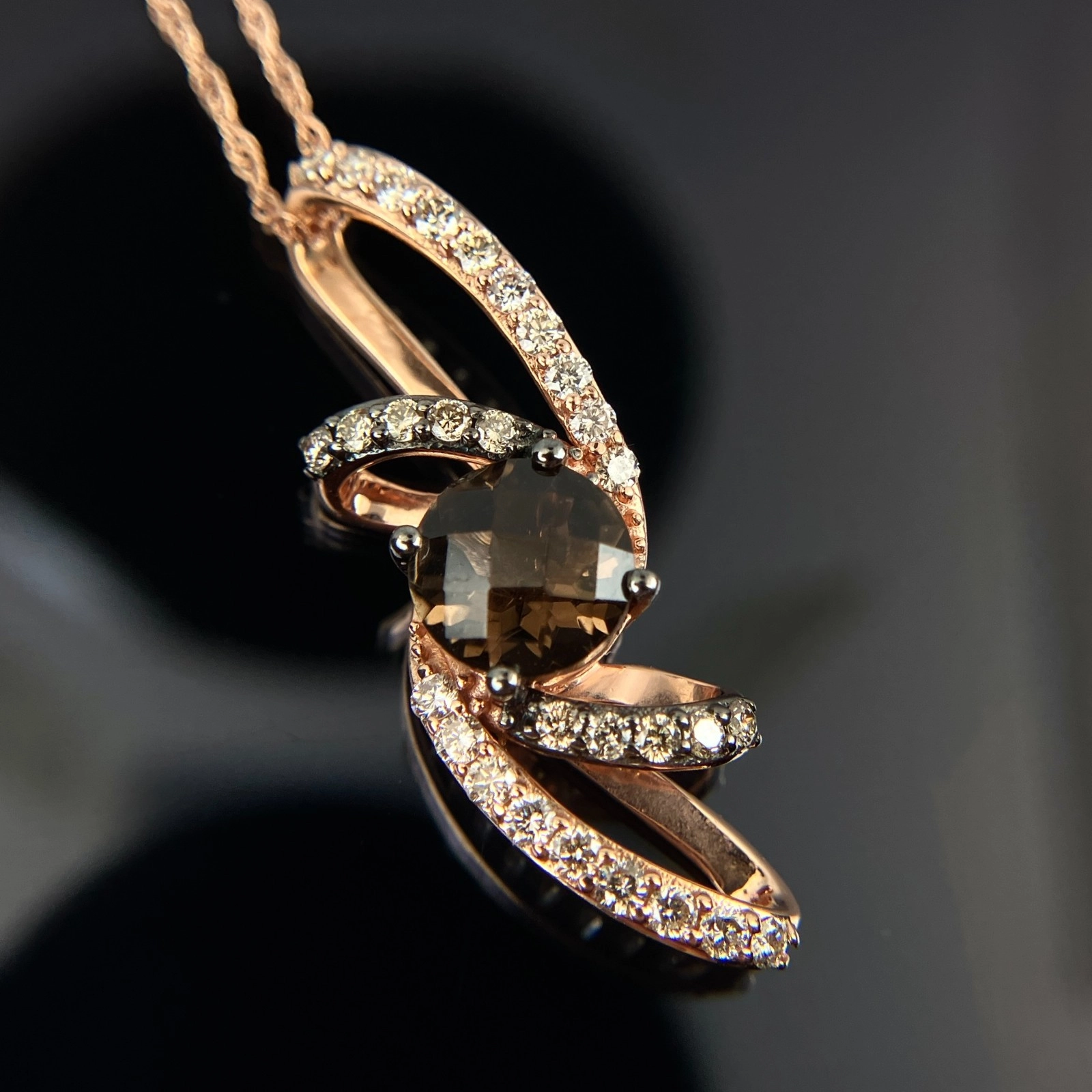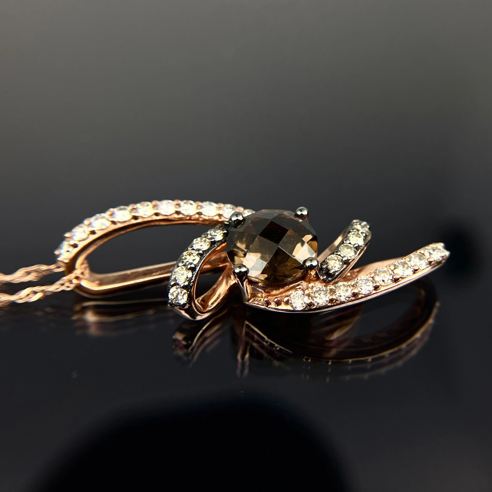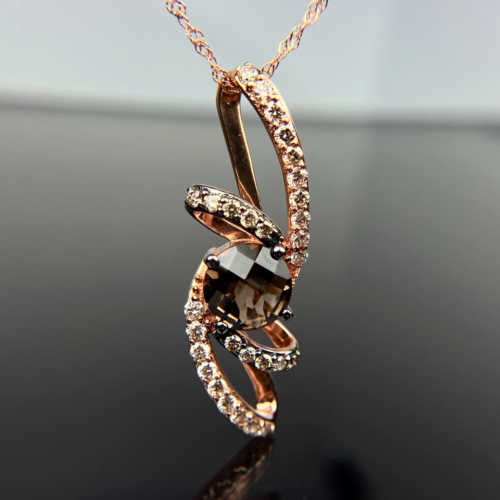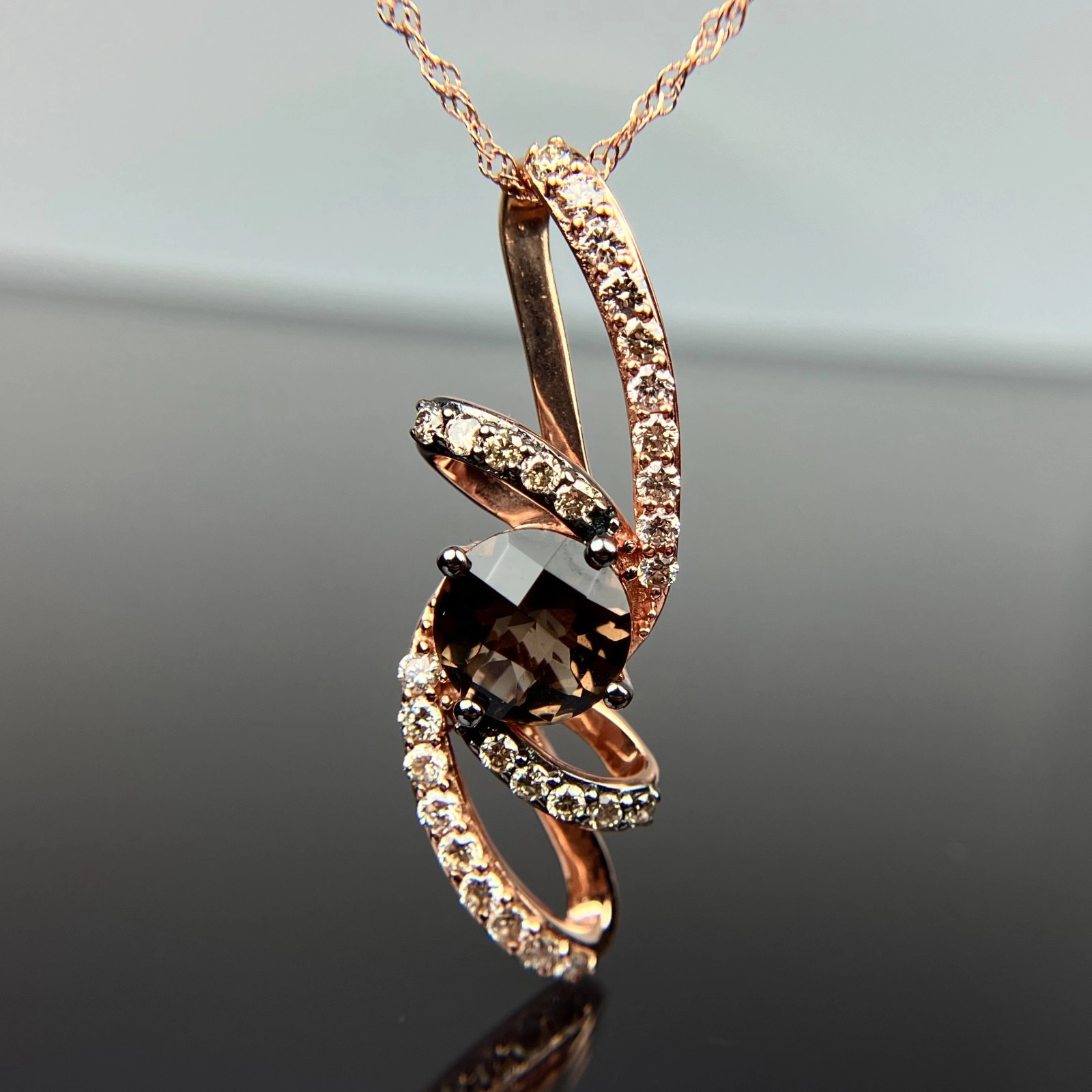 Le Vian 4k Rose Gold White Chocolate Diamond & Smokey Quartz Pendant with 18" Necklace, 3.33 Grams.
